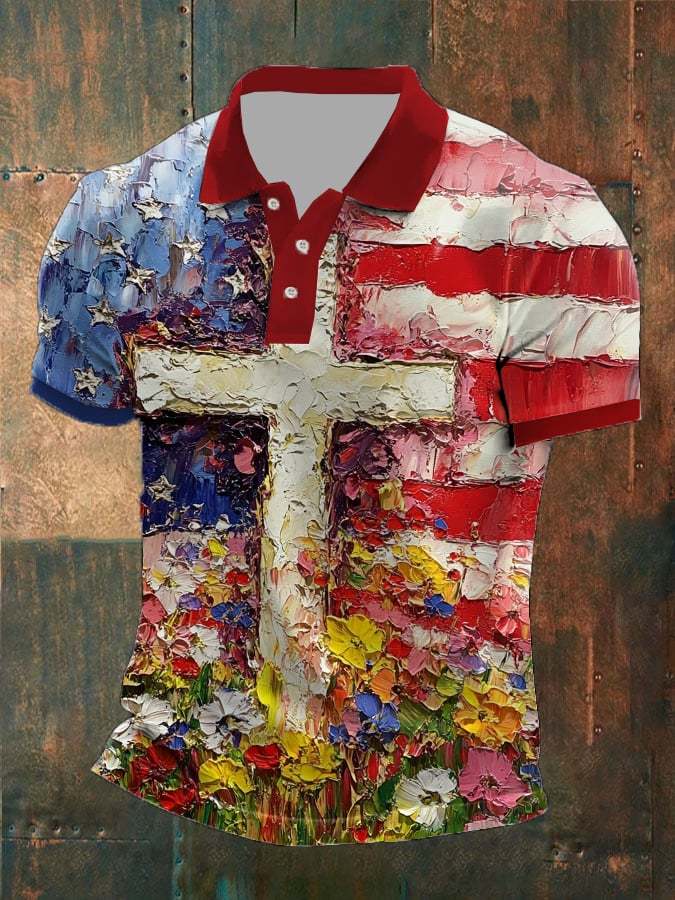 Men's independence day faith oil painting Print Casual Polo Shirt