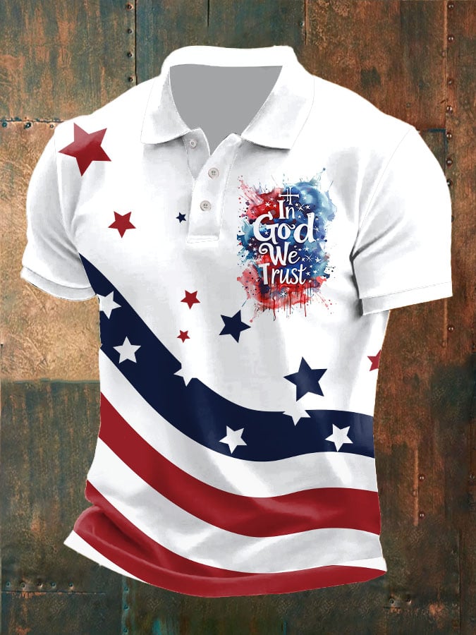 Men's Independence Day Falg In God We Trust Print Polo Shirt