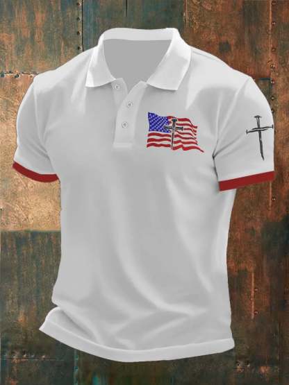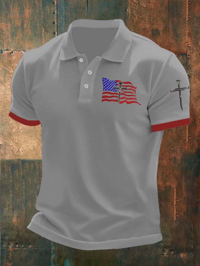 Men'S Independence Day Flag Print Casual Polo Shirt