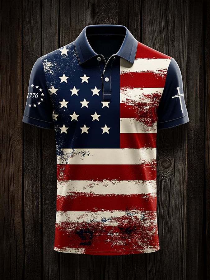 Men'S independence Day Flag Print Casual Polo Shirt