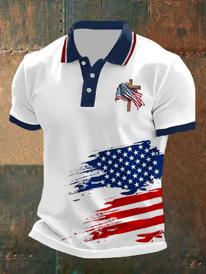 Men's Independence Day Retro Flag Cross Polo Shirt