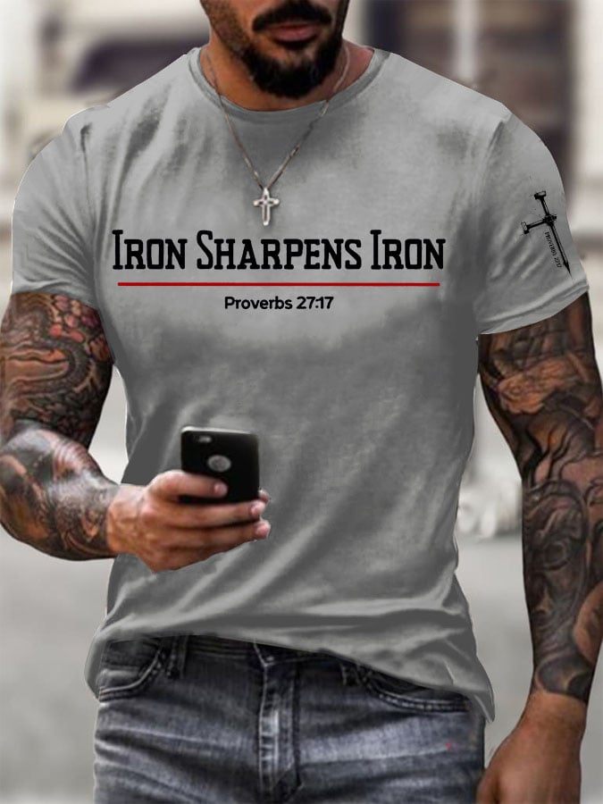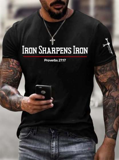 Men's Iron Sharpens Iron Printed Round Neck T-Shirt