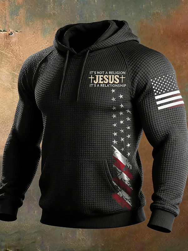 Men's Jesus It's Not A Religion It's A Relationship American Flag Art Print Pocket Hoodie