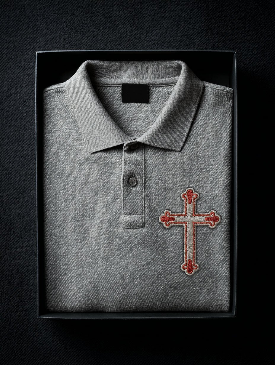Men's Knitted Short Sleeve Cross Print Pullover Polo Shirt