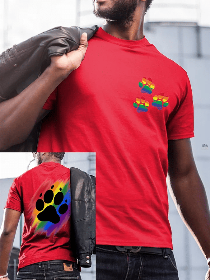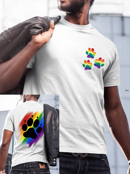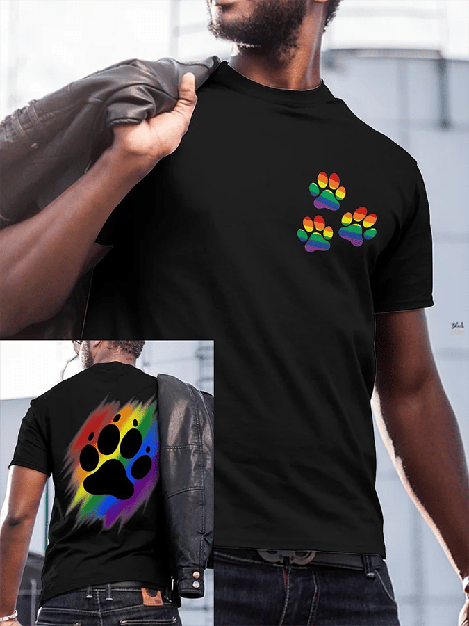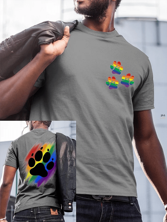 Men's LGBT Rainbow Gradient Pride Dog Paws Casual Print T-Shirt