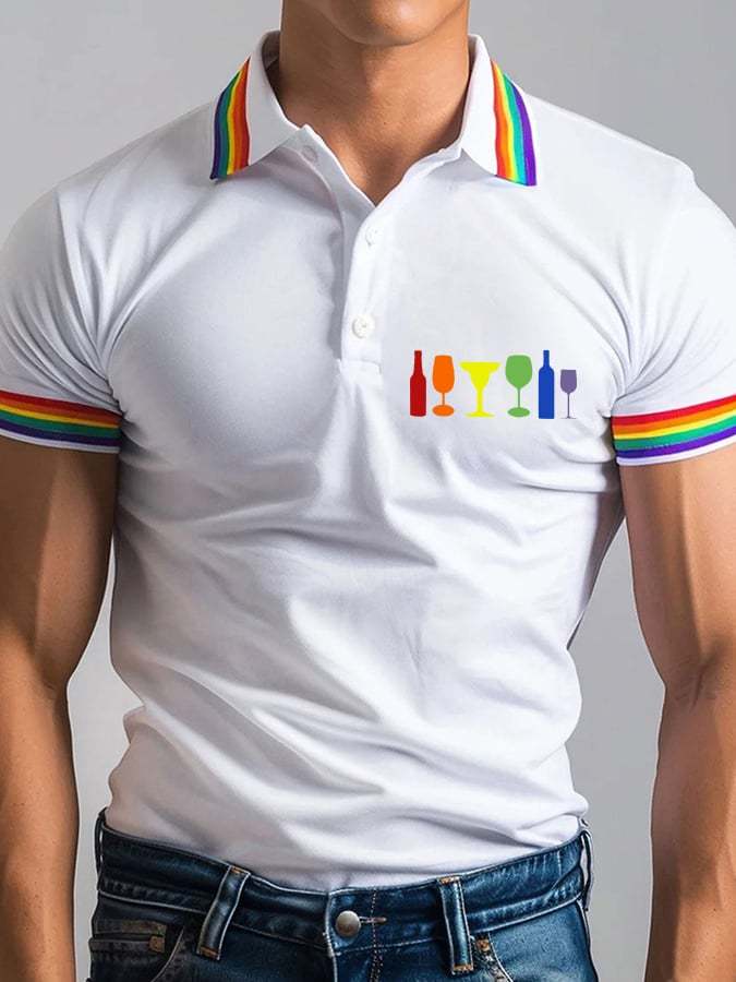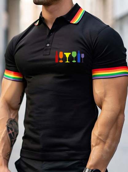 Men's LGBT Wine Glass Rainbow Printed Polo Shirt