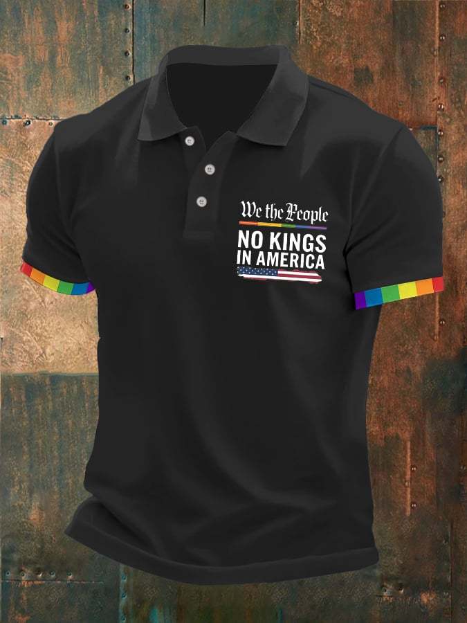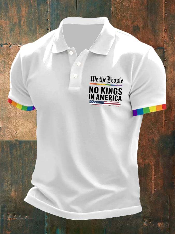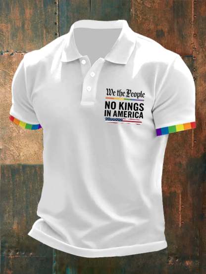Men's No Kings In America LGBT Pride Print Polo Shirt