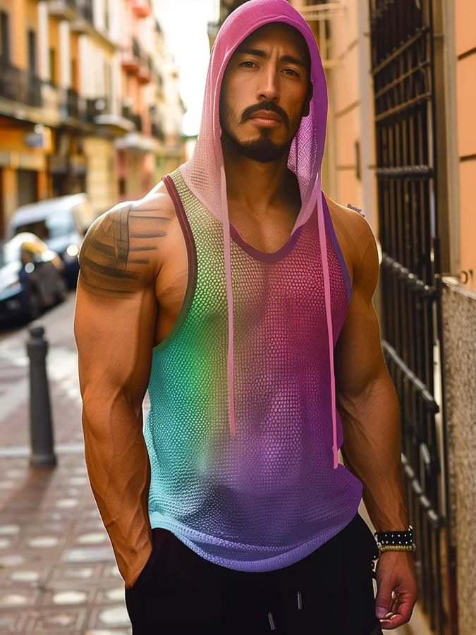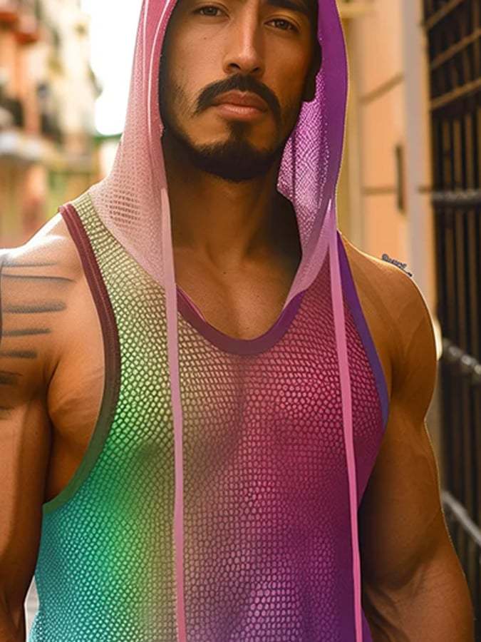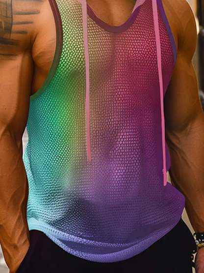 Men's openwork, colorful mesh, sexy, slightly sheer tank top