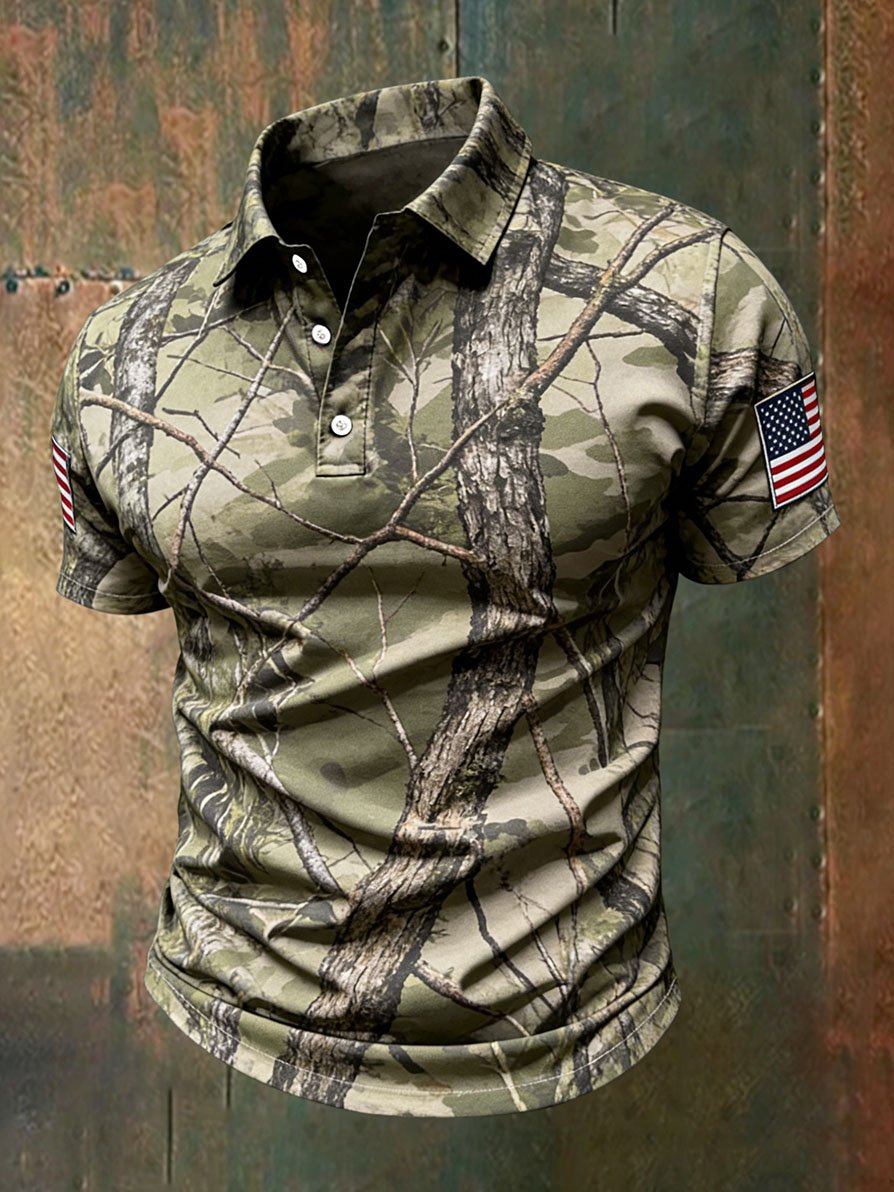 Men's Outdoor Camouflage American 250th Anniversary Short-Sleeve Polo Shirt