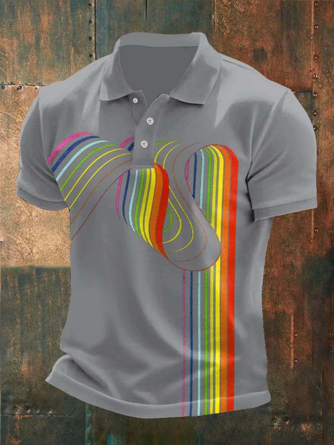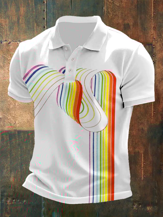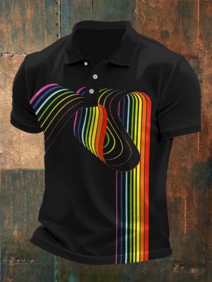 Men's Pride Month Curved Rainbow Print Polo Shirt