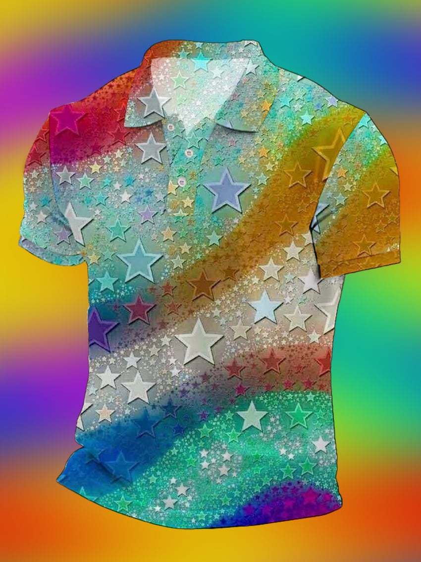Men's Pride Month Gay Rainbow Stars Casual Crew Neck POLO Shirt