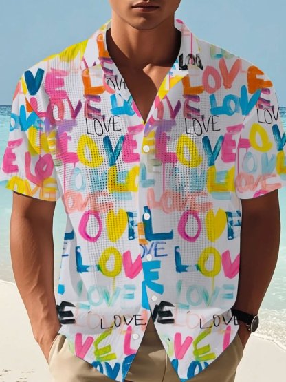 Men's Pride Month LOVE Graffiti Lettering Printed Holiday Shirt