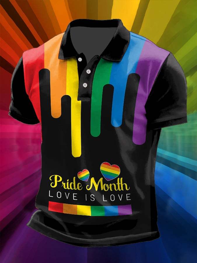 Men's Pride Month LOVE IS LOVE Print Polo Shirt