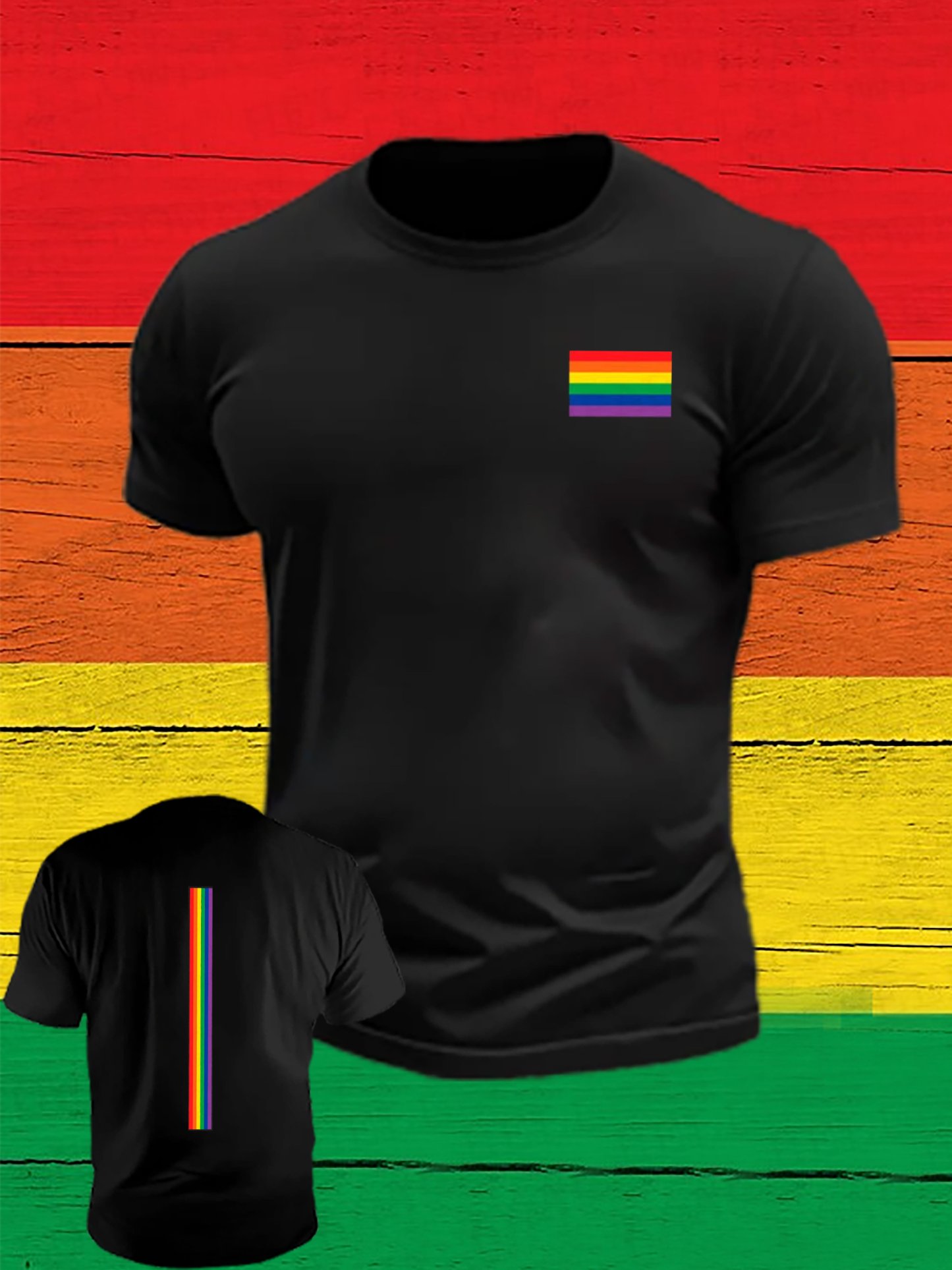 Men's Pride Month Rainbow Flag Front And Reverse Print Crew Neck T-Shirt