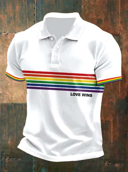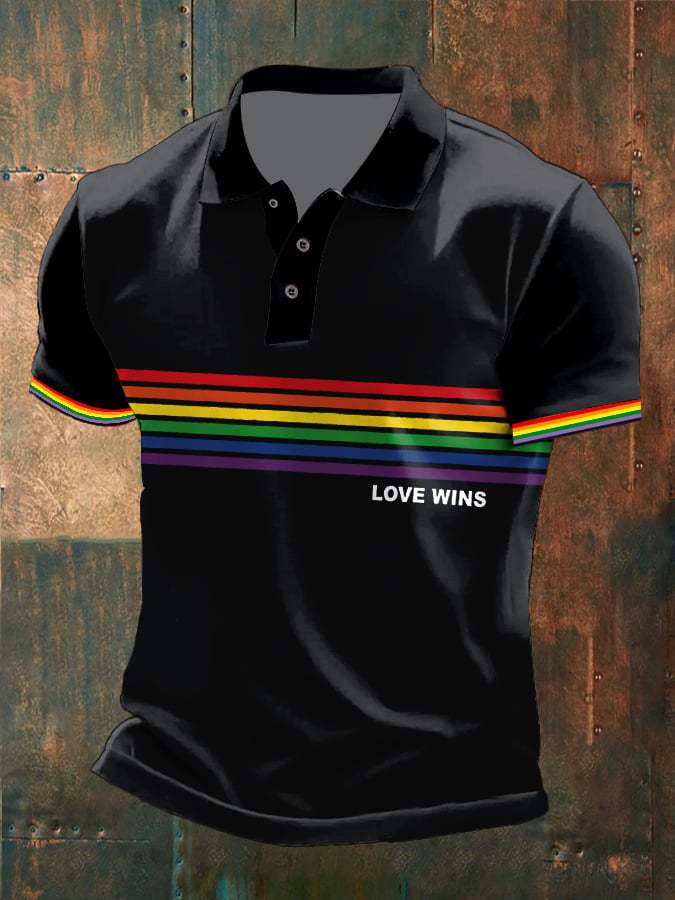 Men's Pride Month Rainbow Love Wins Print Polo Shirt Top
