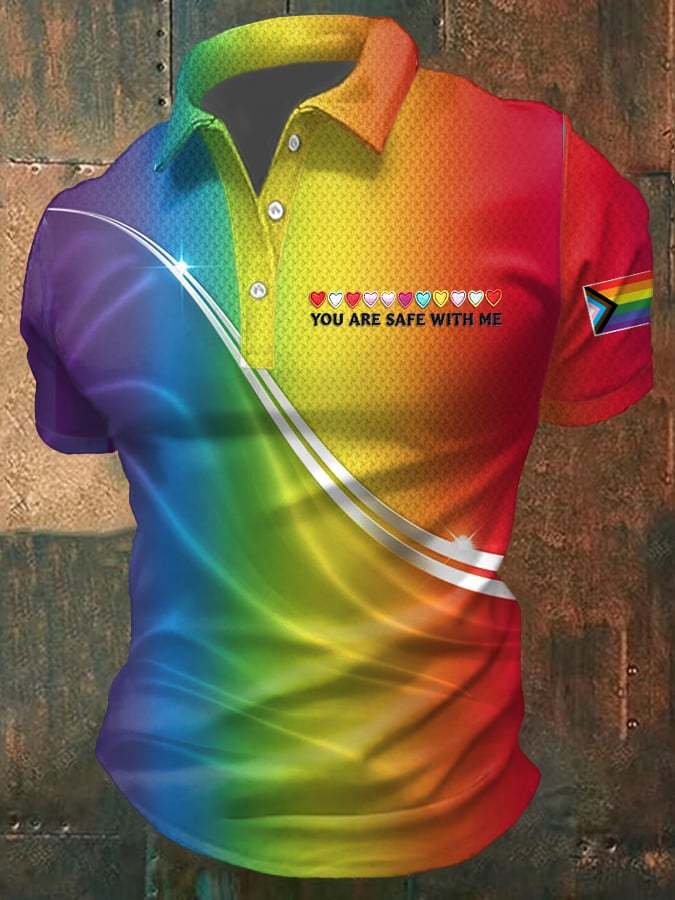 Men's Pride Month Rainbow-Print Casual Polo Shirt
