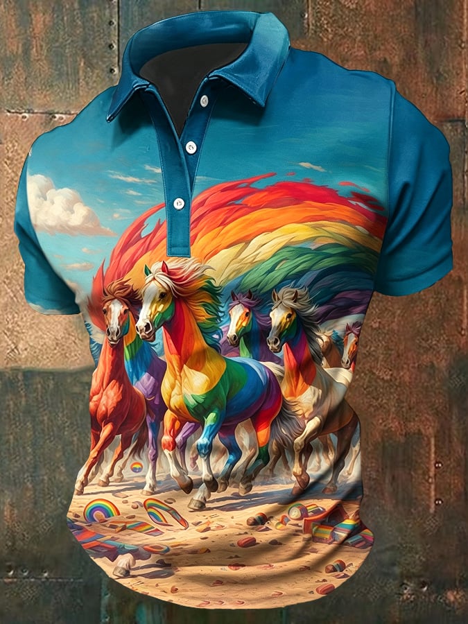 Men's Pride Month Rainbow-Print Casual Polo Shirt