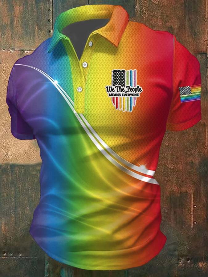 Men's Pride Month Rainbow-Print Casual Polo Shirt