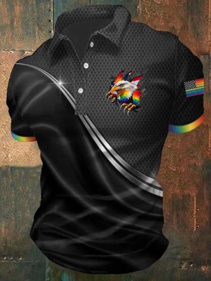 Men's Pride Month Rainbow-Print Casual Polo Shirt