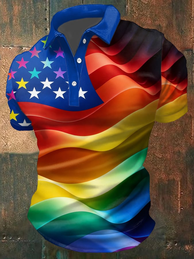 Men's Pride Month Rainbow-Print Casual Polo Shirt