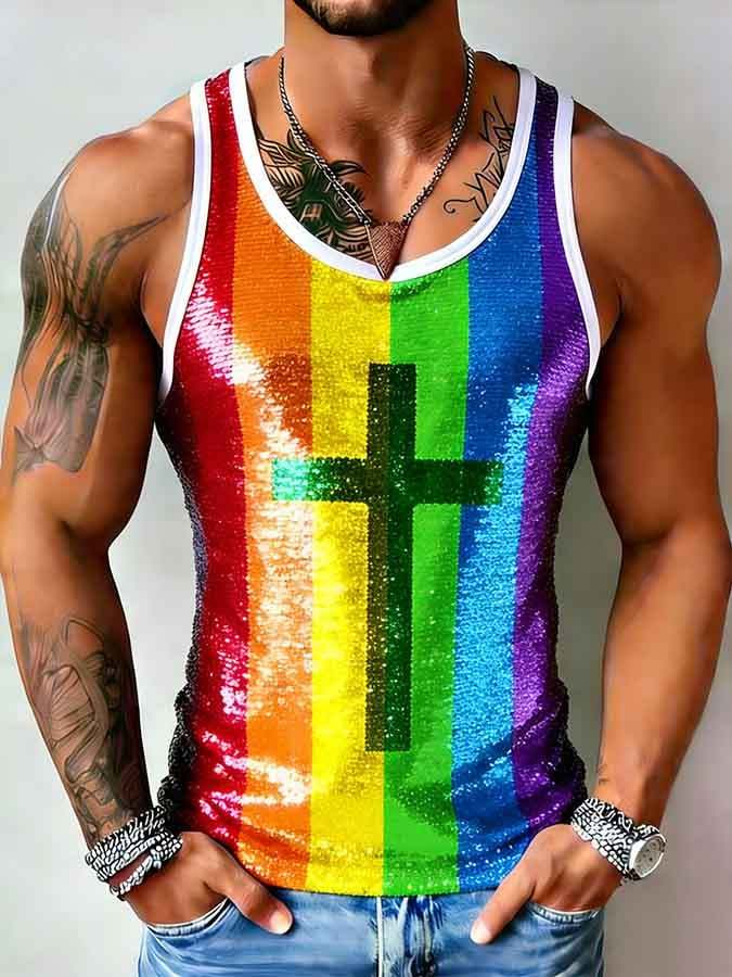 Men's Pride Month Rainbow Print Tank Top