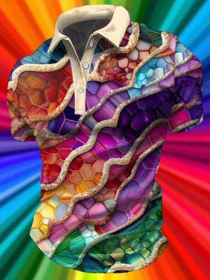 Men's Pride Month Rainbow Printed Knitted Pullover Polo Shirt Top