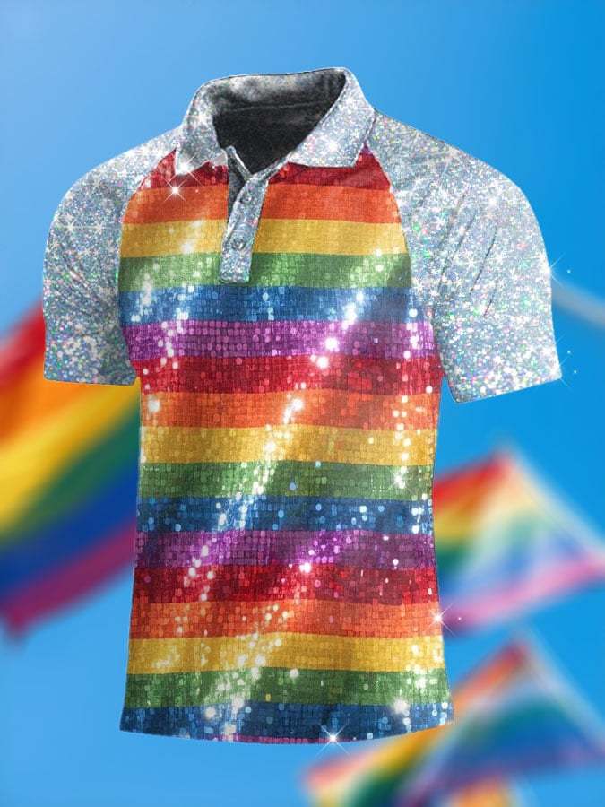 Men's Pride Month Rainbow Sequin Print Polo Shirt