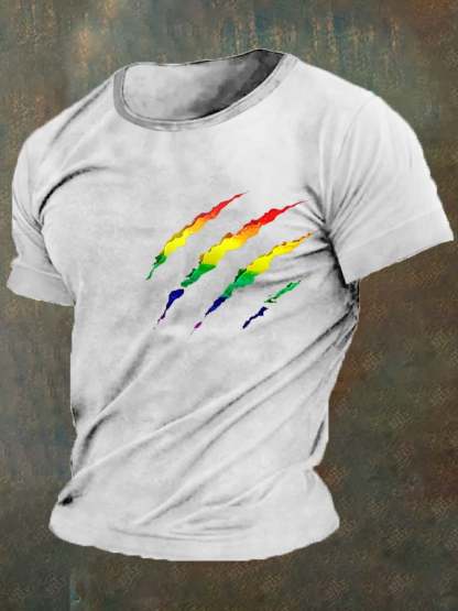 Men's Rainbow Bear Paw Print Casual T-Shirt