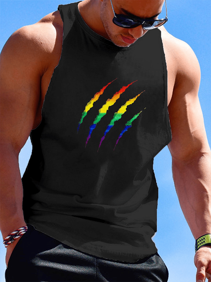 Men's Rainbow Bear Paw Print Casual Tank Top