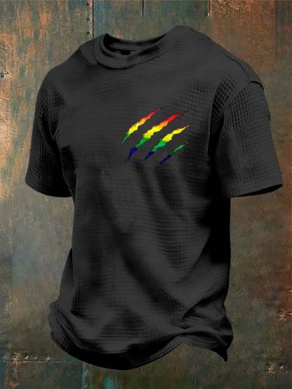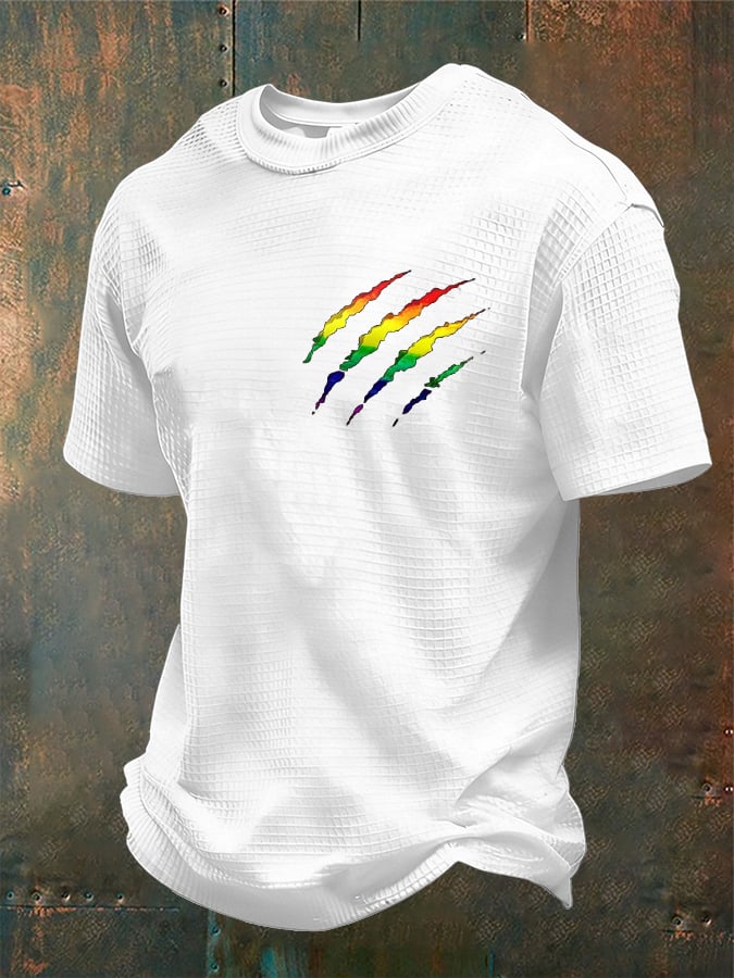 Men's Rainbow Bear Paw Print Waffle Short Sleeve T-Shirt