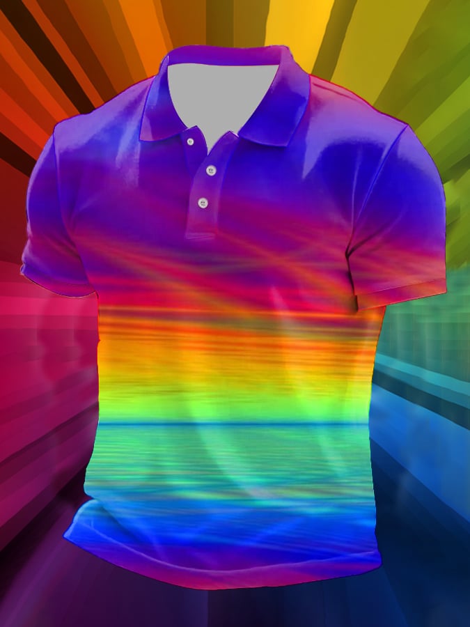 Men's Rainbow Gradient Print Polo Shirt
