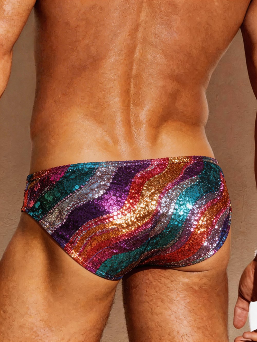 Men's Rainbow Gradient Shimmering Wave Pattern Printed Underwear