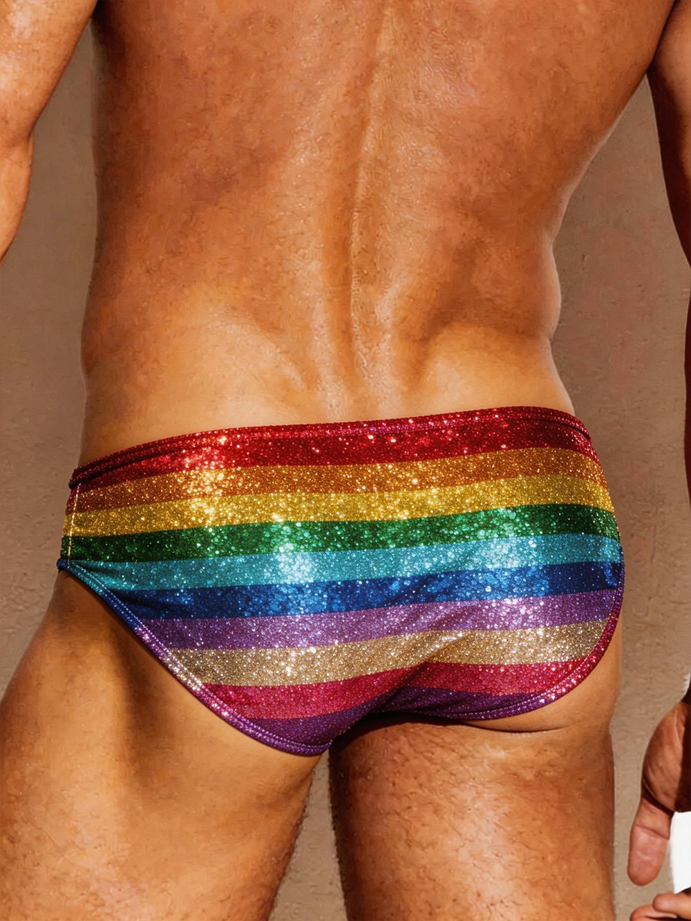 Men's Rainbow Gradient Shimmering Wave Pattern Printed Underwear