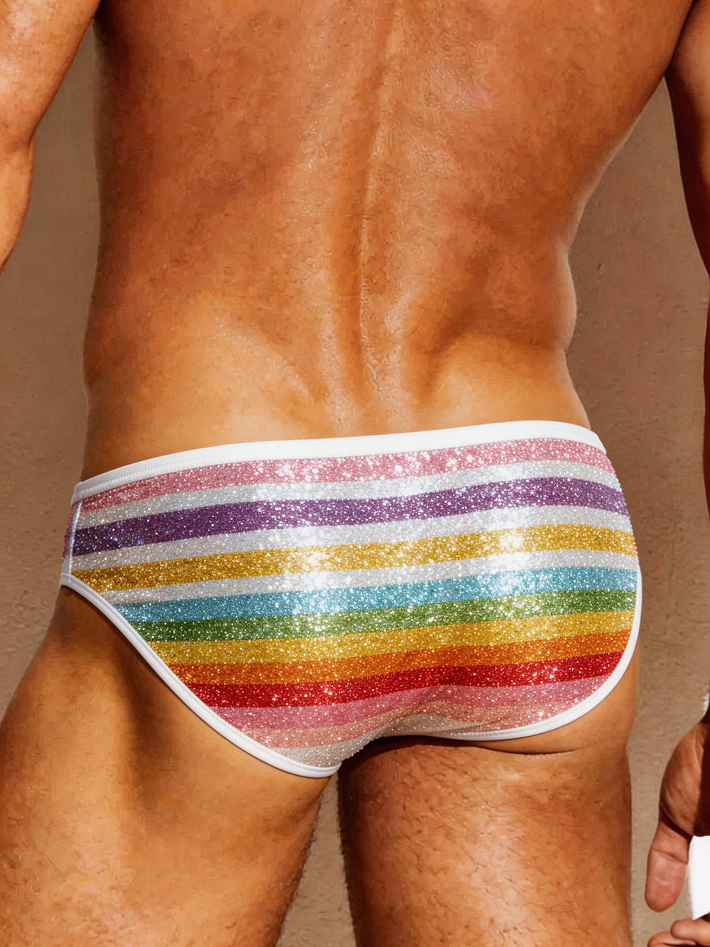 Men's Rainbow Gradient Shimmering Wave Pattern Printed Underwear