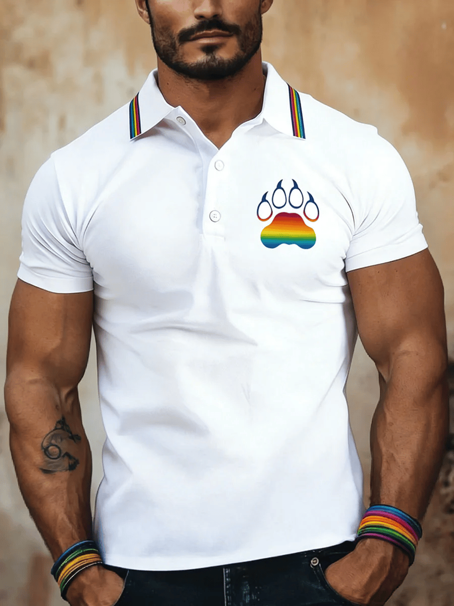 Men's Rainbow Heart Prin Polo Shirt