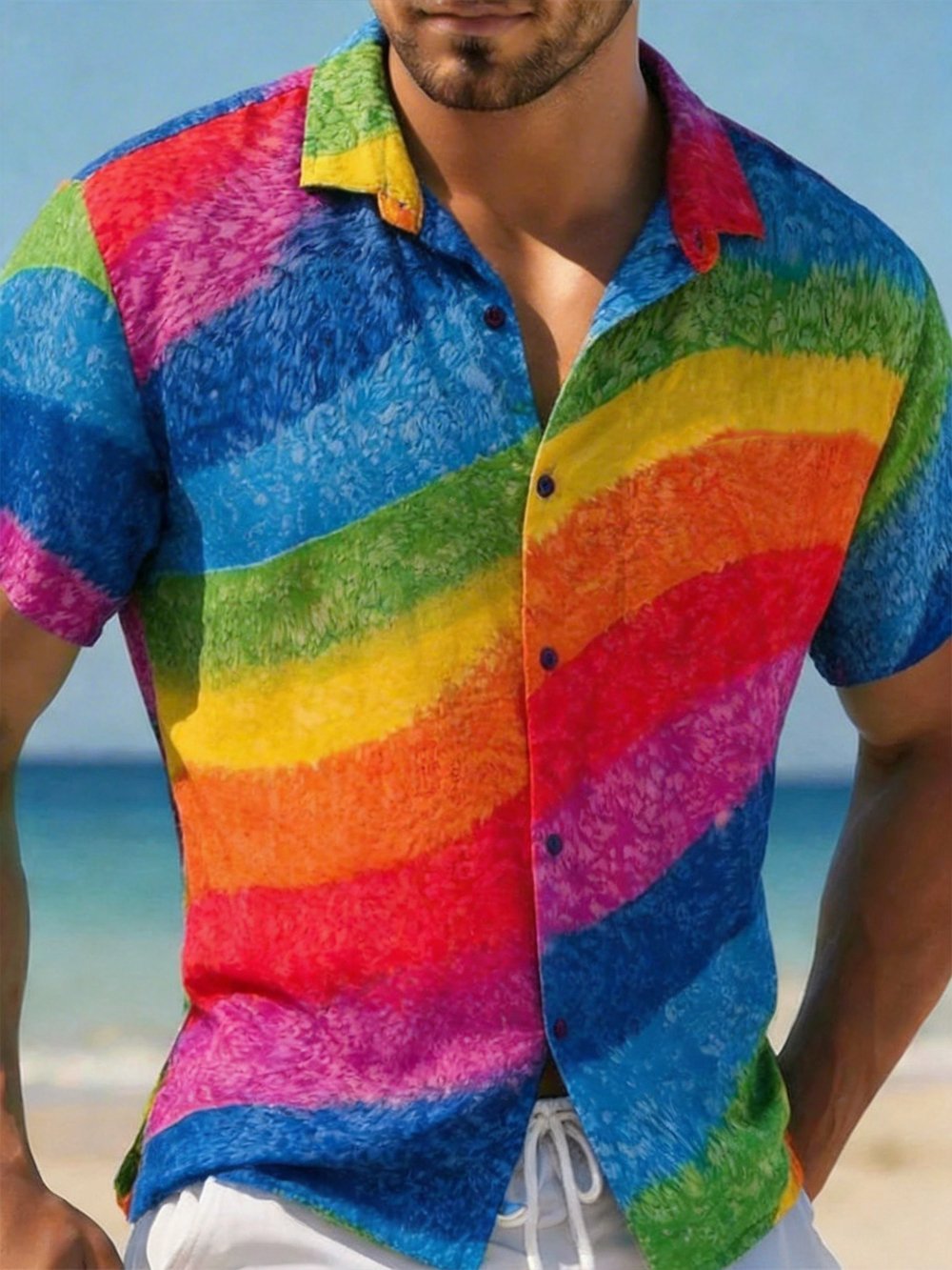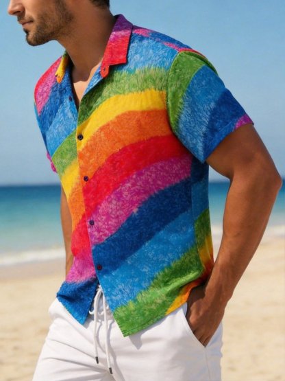 Men's Rainbow-Print Short-Sleeve Shirt
