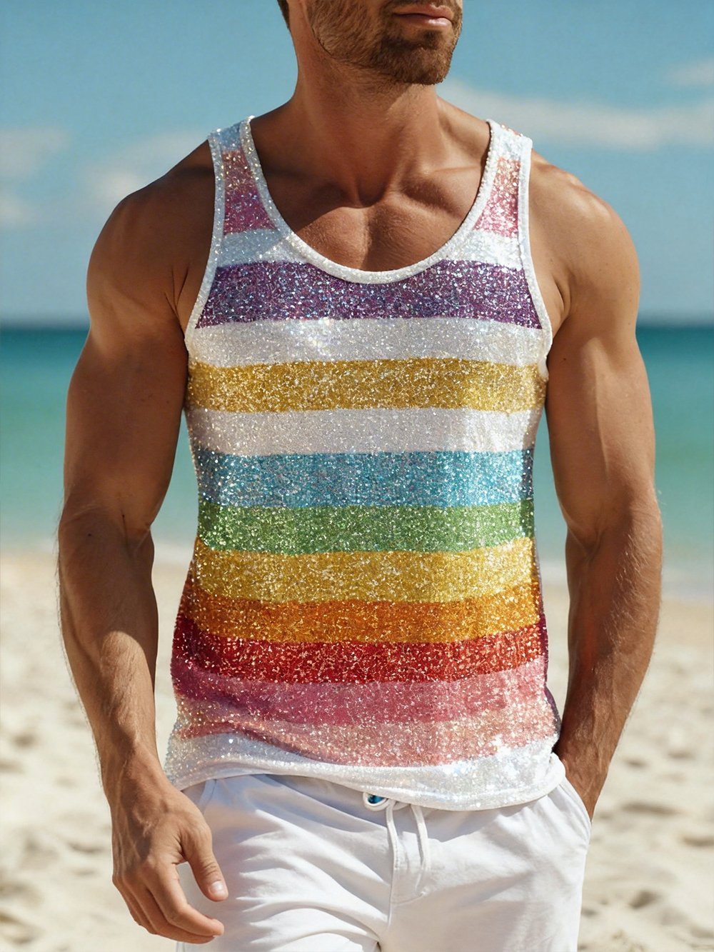 Men's Rainbow-Print Sleeveless Vest – lolonb