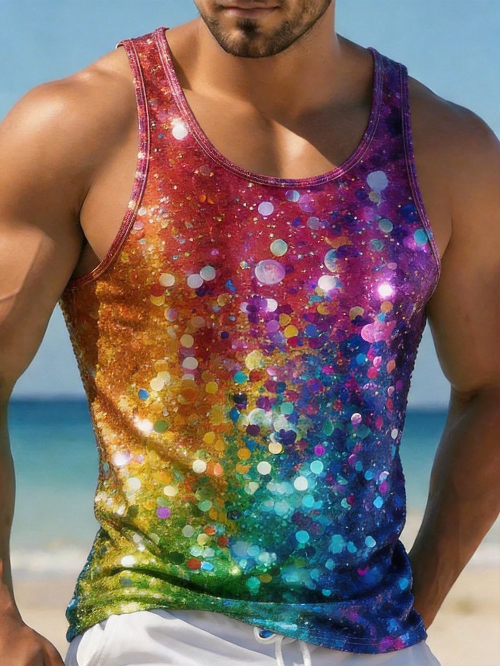 Men's Rainbow-Print Sleeveless Vest