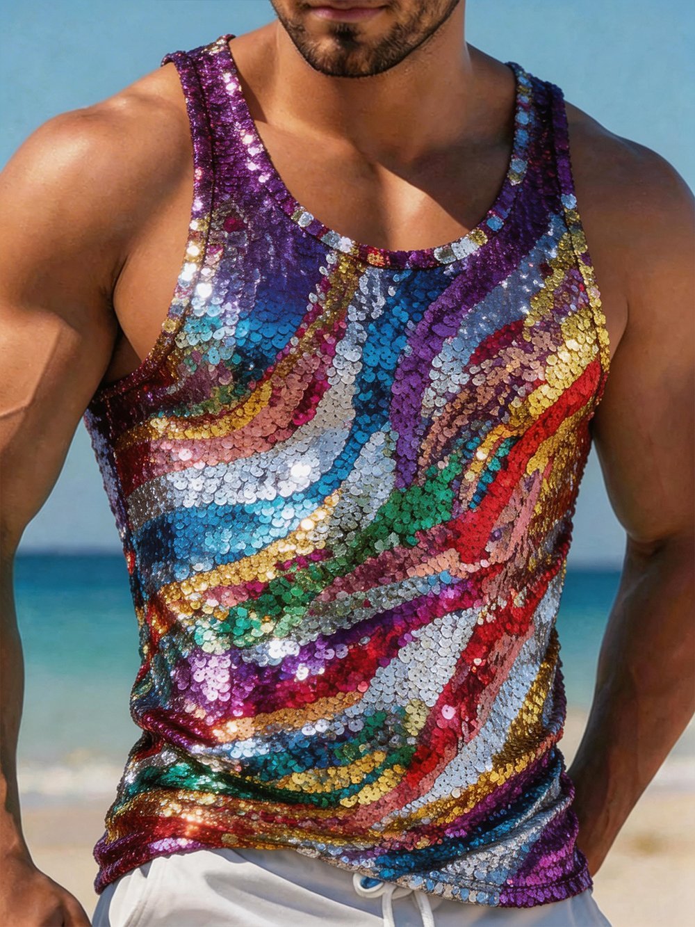 Men's Rainbow-Print Sleeveless Vest – lolonb