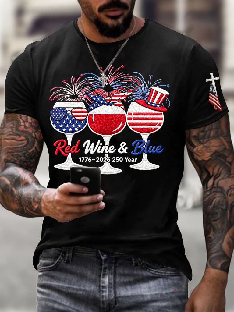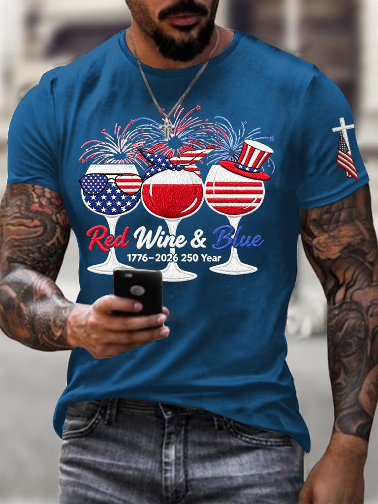 Men's Retro 1776–2026 250 Year Red Wine & Blue Printed Top