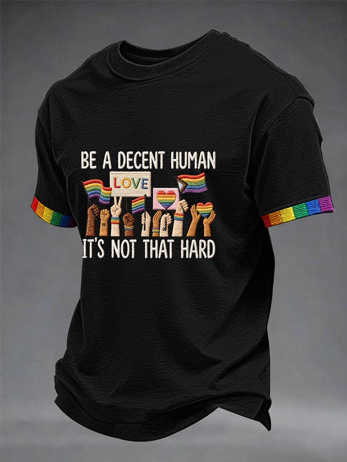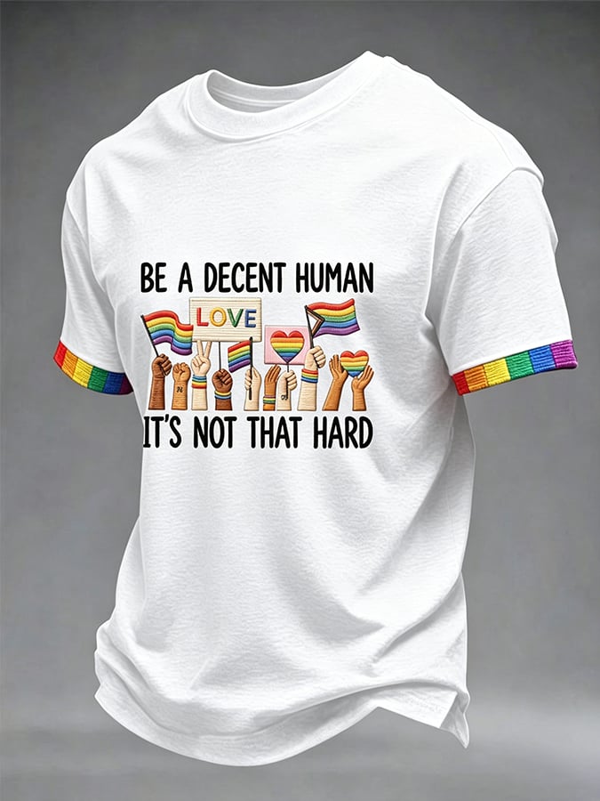 Men's Retro Be A Decent Human,It's Not That Hard Love LGBTQ Print Shirt