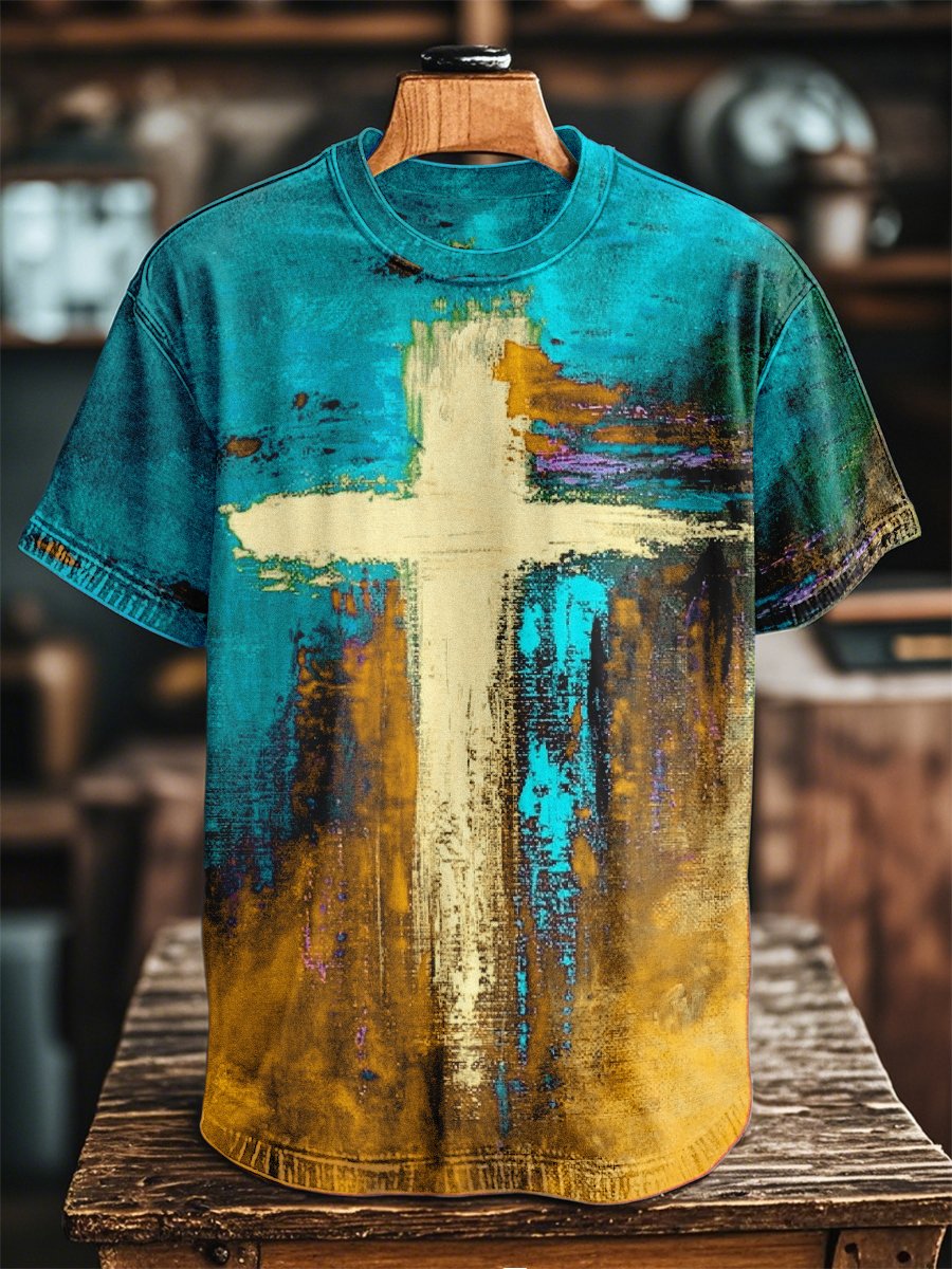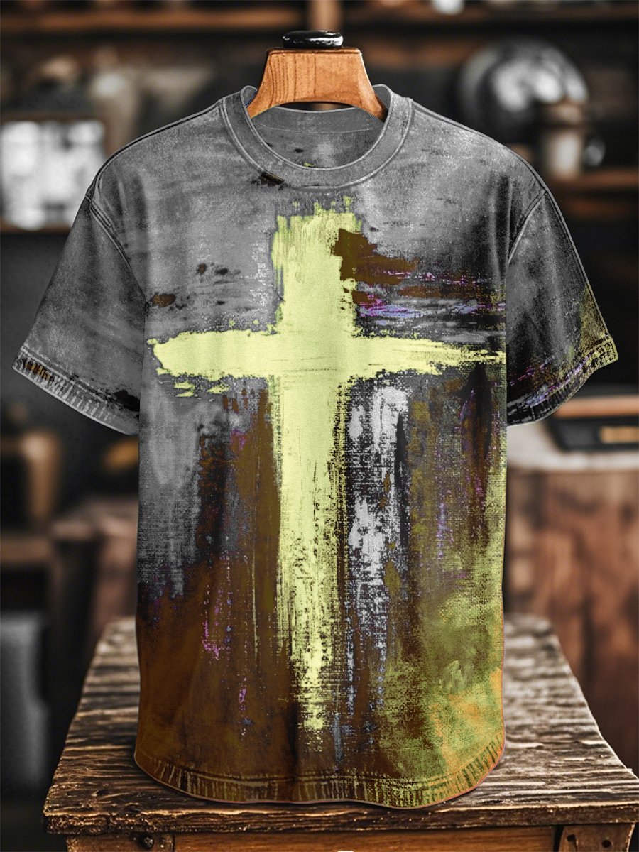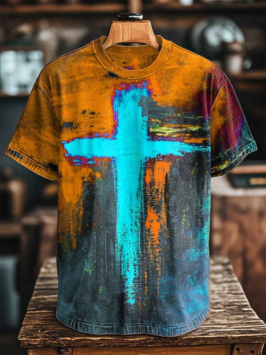 Men's Retro Casual Cross Art Short Sleeve T-Shirt