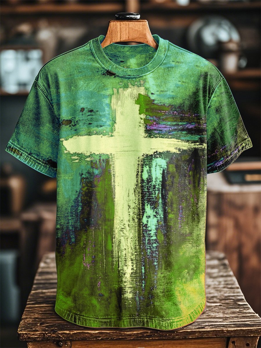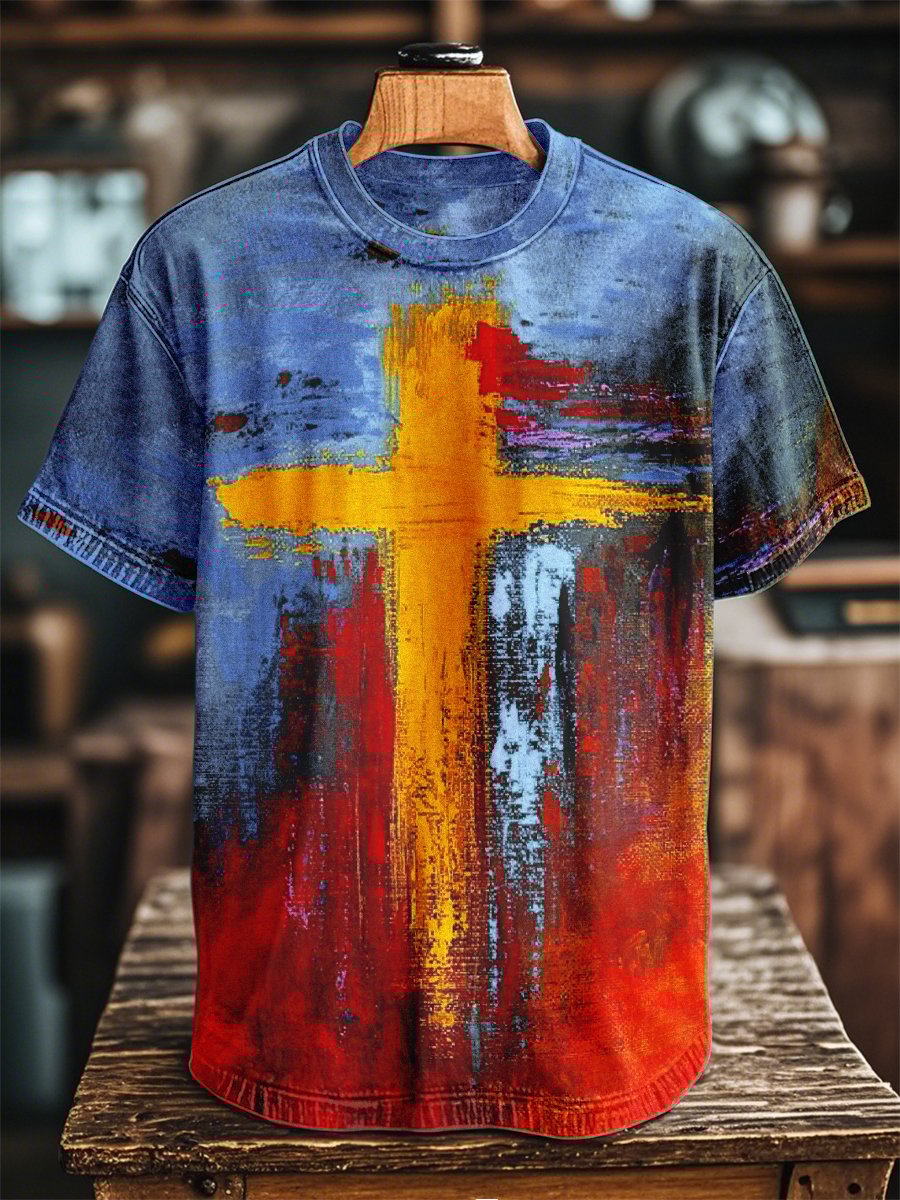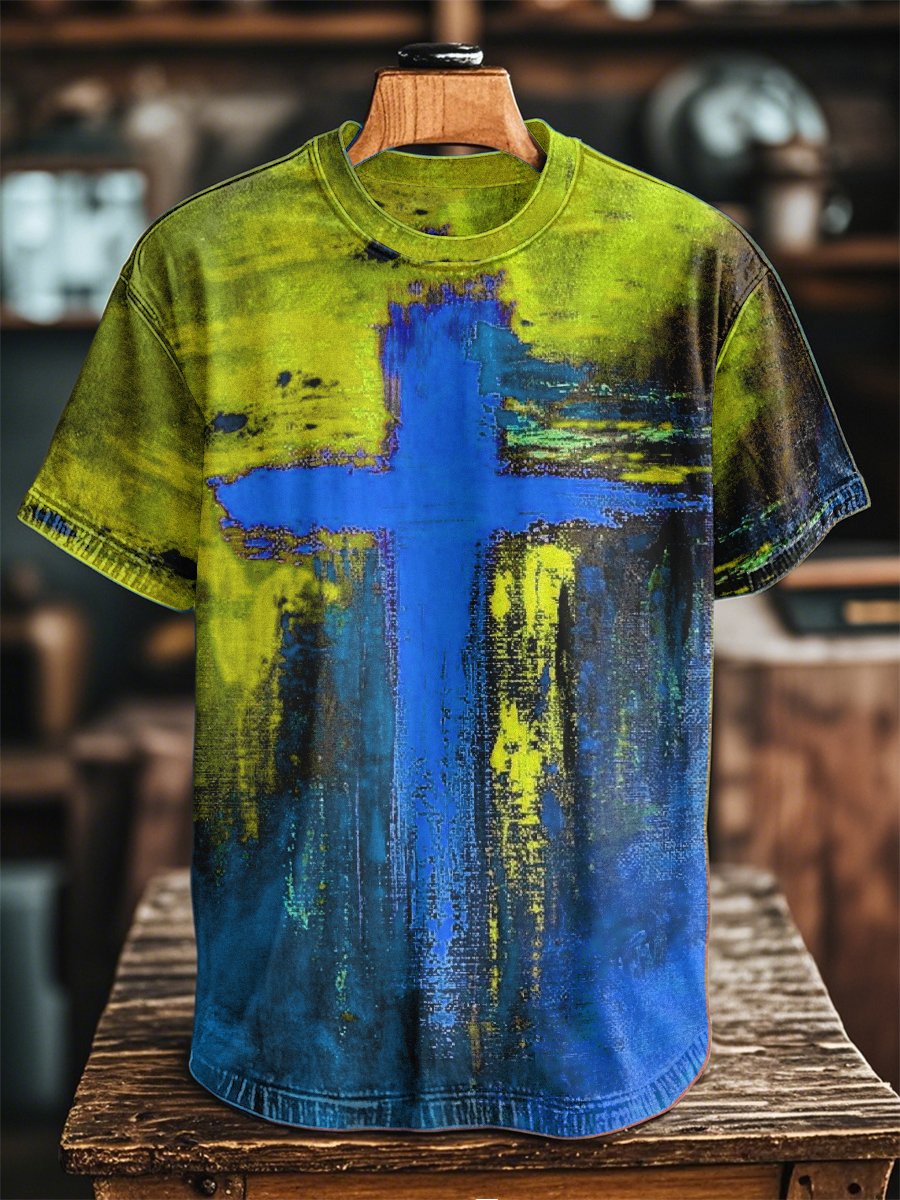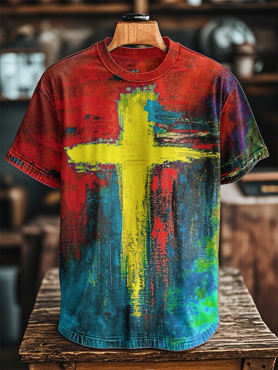 Men's Retro Casual Cross Art Short Sleeve T-Shirt