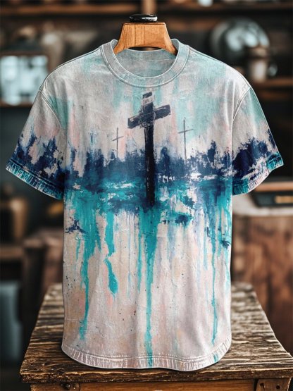 Men's Retro Casual Cross Art Short Sleeve T-Shirt