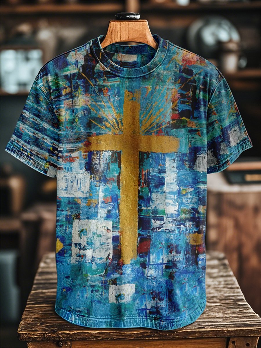 Men's Retro Casual Cross Art Short Sleeve T-Shirt
