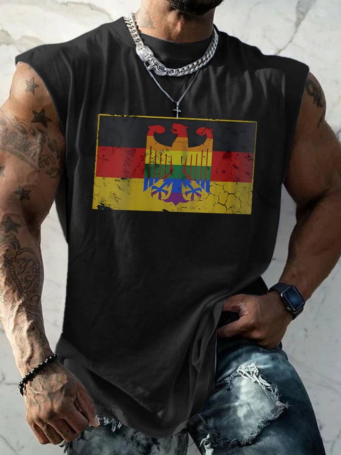 Men's Retro Christopher Street Day LGBTQ Print Round Neck Tank Top