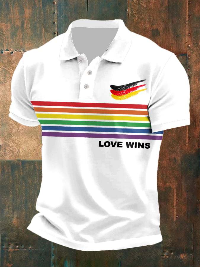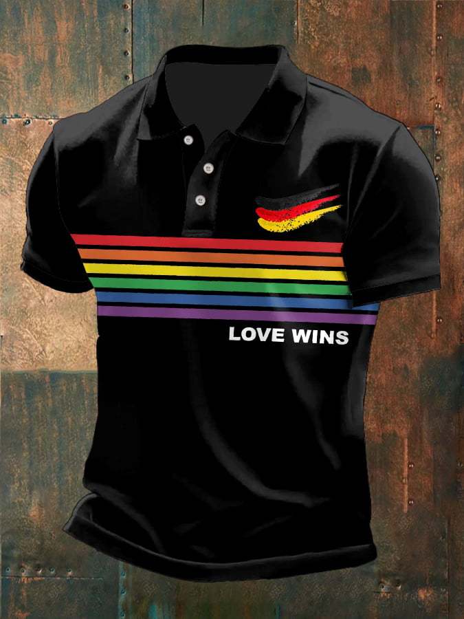 Men's Retro Christopher Street Day Love Wins Print Polo Shirt