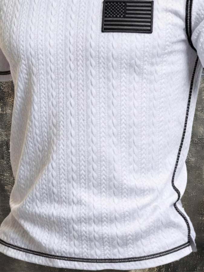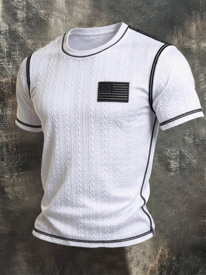 Men's Retro Color-Block Knitted T-Shirt with Textured Finish