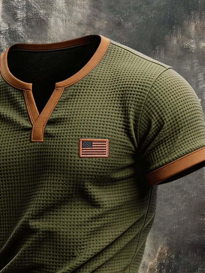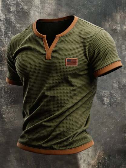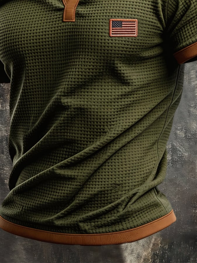 Men's Retro Color-block Waffle-Knit Henley T-Shirt