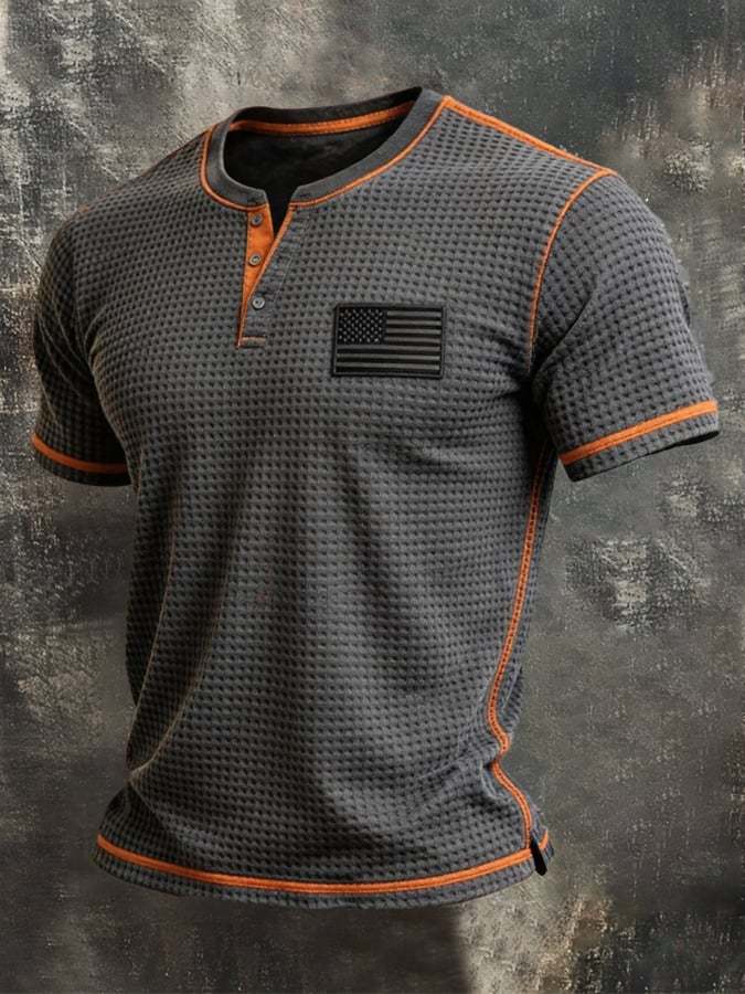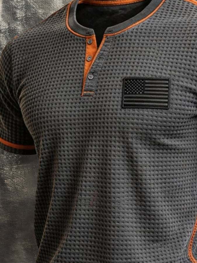 Men's Retro Color-block Waffle-Knit Henley T-Shirt